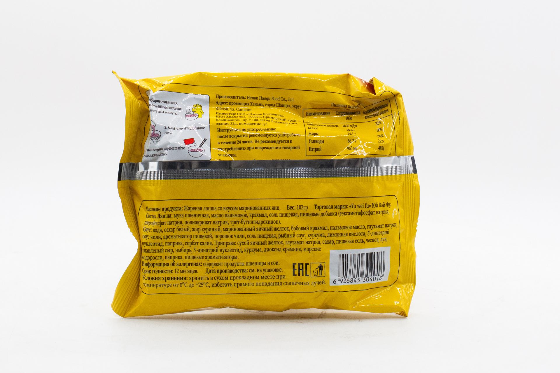 Лапша жареная Юй Вэй Фу со вкусом яйца (Китай) 102г0,00 руб. за штуку (в упак. 5 шт.) |
